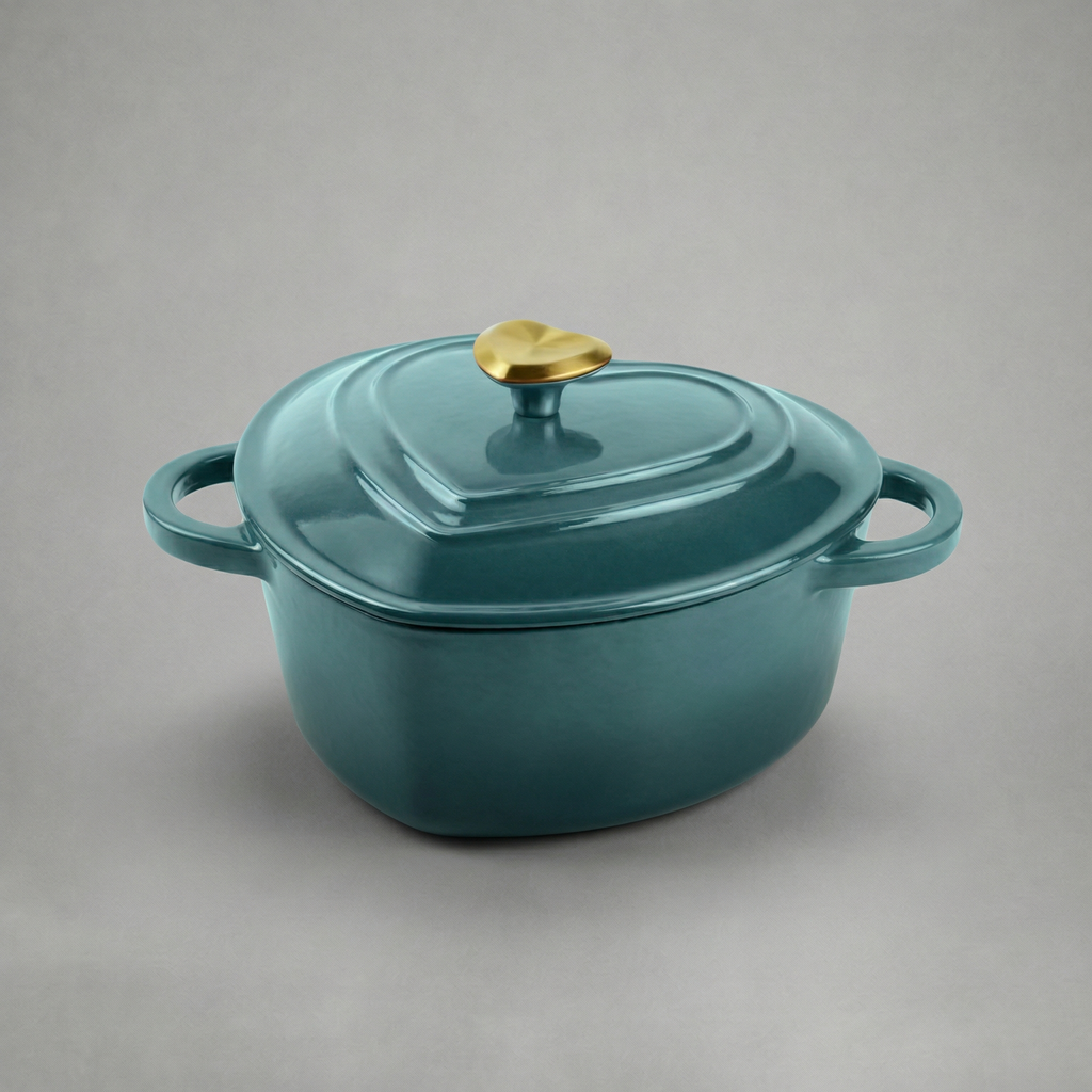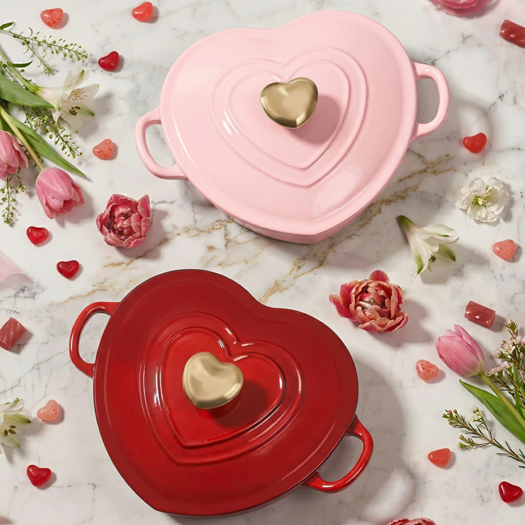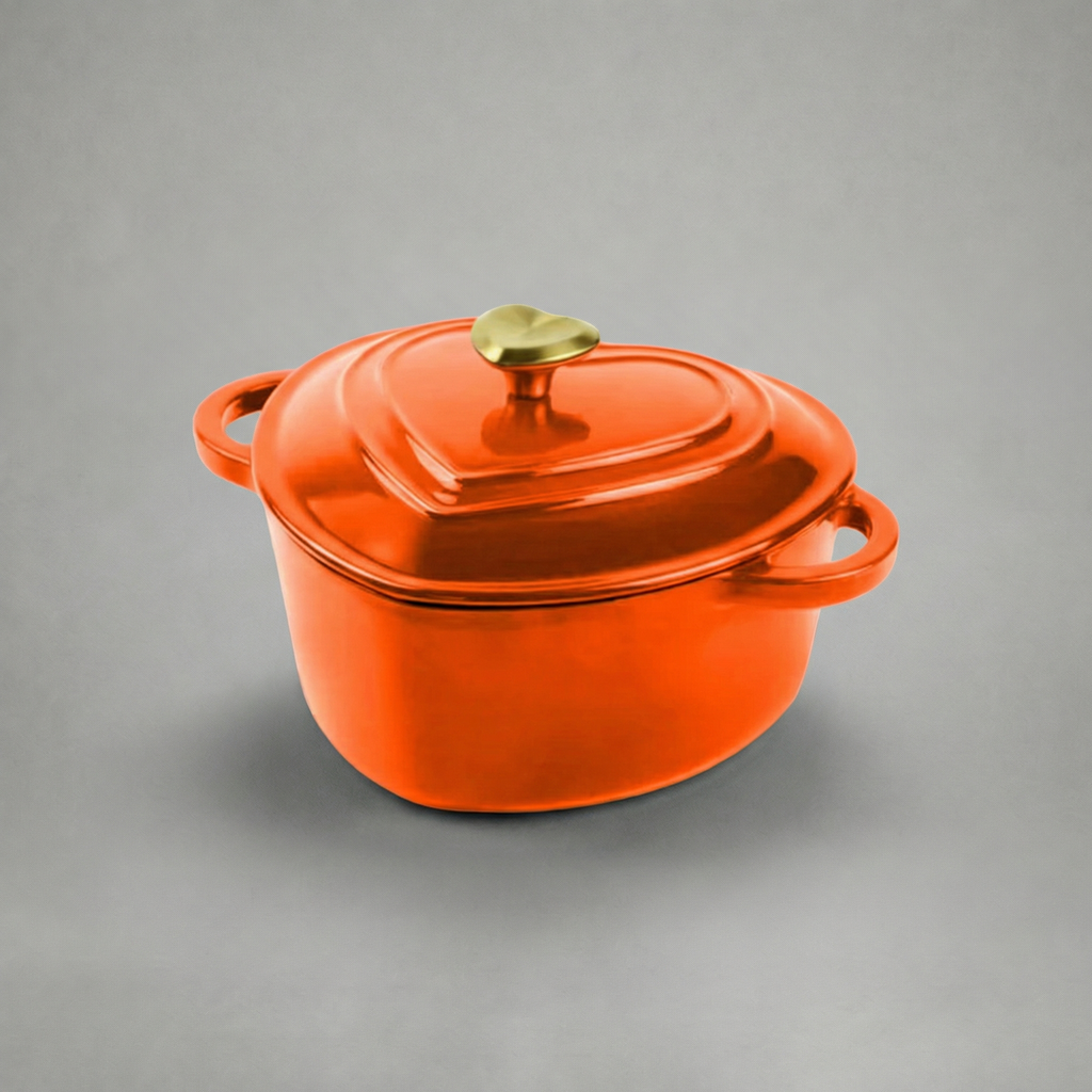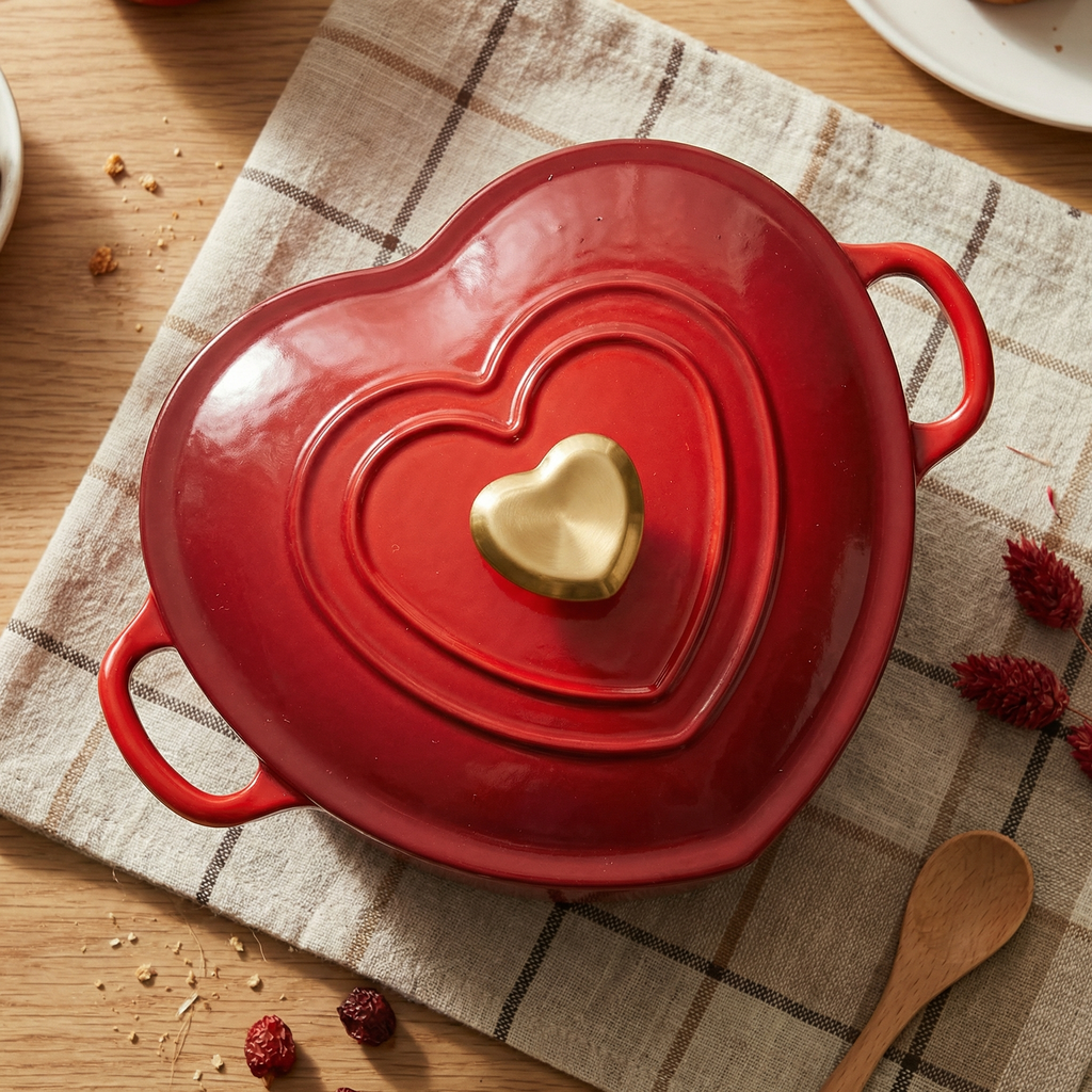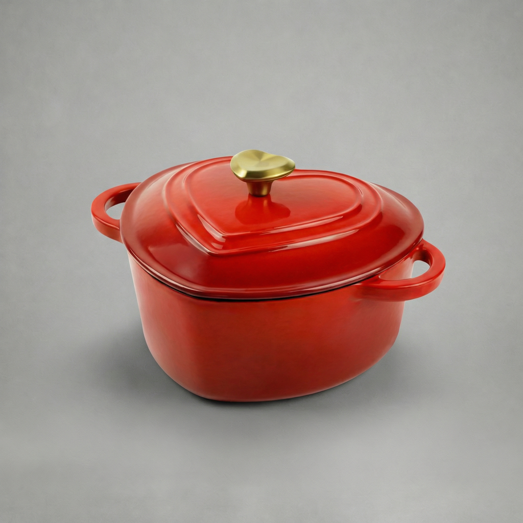 Smaltovaný litinový hrnec ve tvaru srdce je navržený tak, aby spojoval funkčnost s emocí a proměnil každé vaření v malé gesto lásky. Je ideální pro každodenní pokrmy i výjimečné chvíle, ať už vaříte, pečete nebo servírujete přímo na stůl.