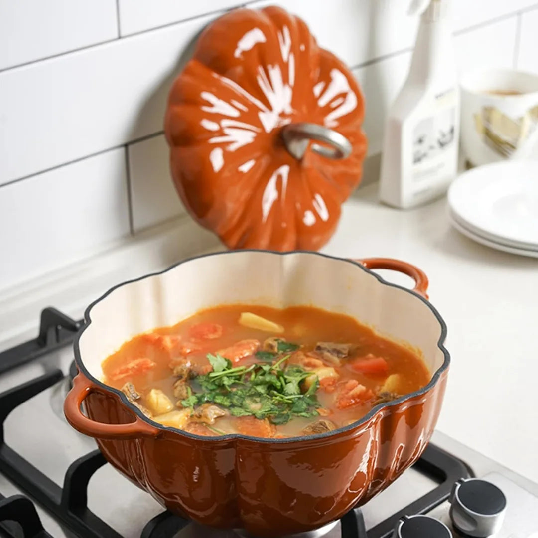 Smaltovaný litinový hrnec dýně spojuje dlouhou životnost, spolehlivý výkon a výrazný podzimní design. Odolná litina se smaltovaným povrchem zajišťuje rovnoměrné rozvádění tepla a jeho dlouhé udržení, takže pokrmy se připravují klidně, bez připalování a s plnou chutí.