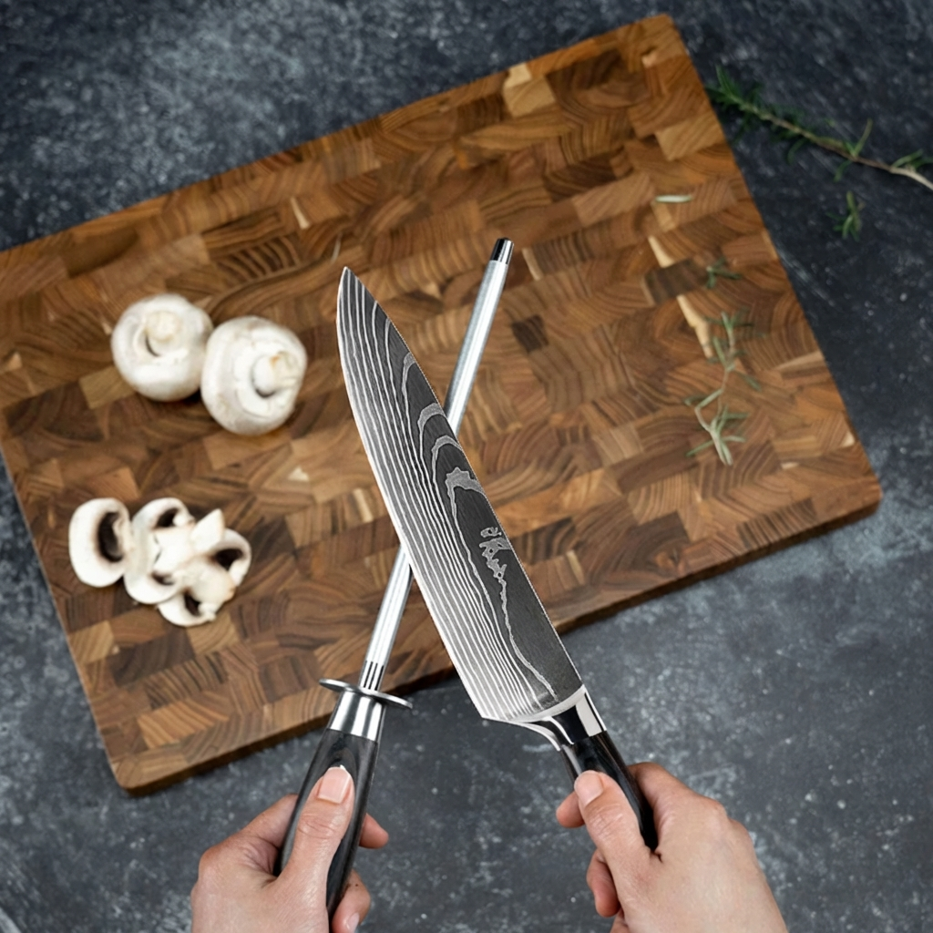 Od nepřilnavého titanu po odolnou litinu, všechno se snadno čistí. Nože zůstávají ostré a dřevěné nástroje bezpečné a odolné — žádný plast, který se taví nebo opotřebovává.