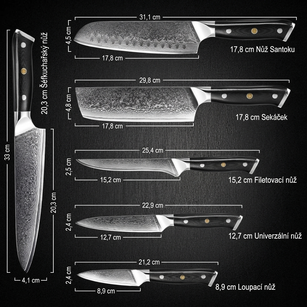 Kolekce Eclipse — Sada 6 japonských damaškových nožů z oceli VG-10