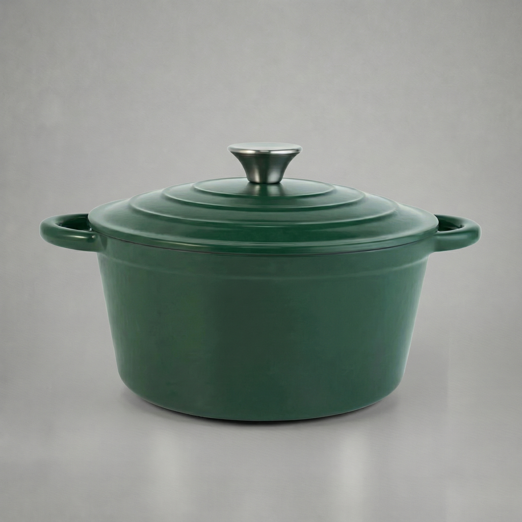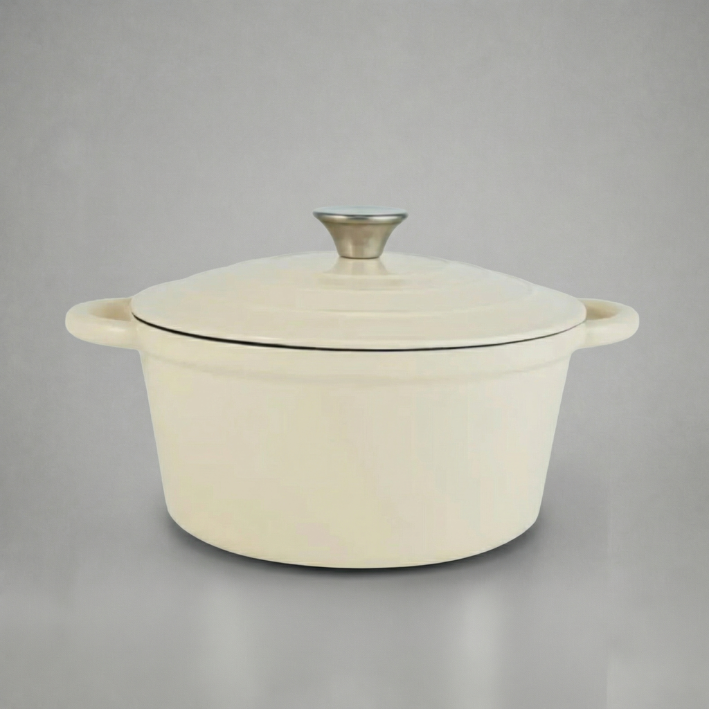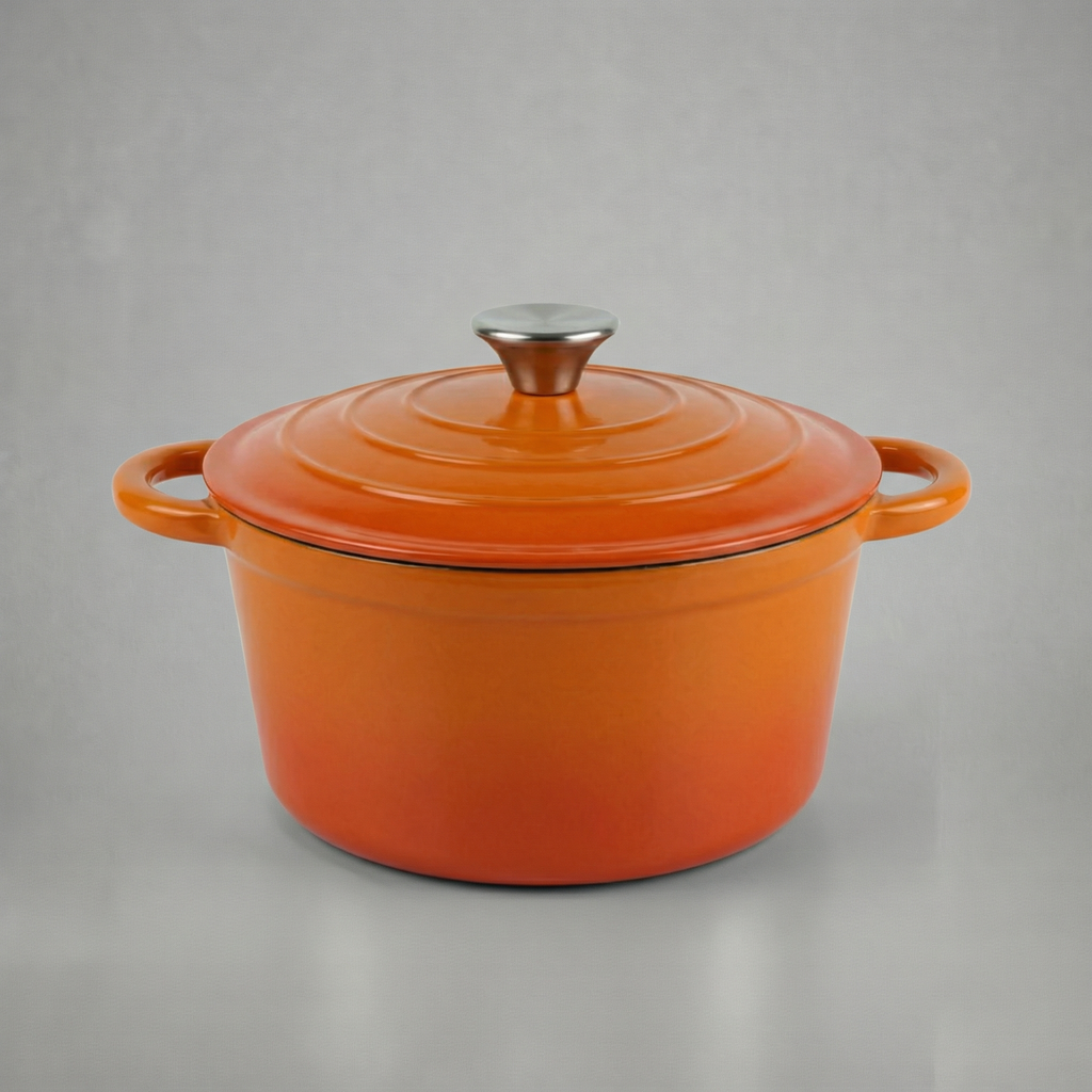 Smaltovaný litinový hrnec typu cocotte je navržen pro každodenní vaření s důrazem na dlouhou životnost, odolnost a stabilní výkon. Je vyroben z masivní litiny, která rovnoměrně rozvádí teplo a udržuje ho déle, díky čemuž se jídlo připravuje bez výkyvů teploty, rovnoměrně se prohřívá a lépe si zachová svou chuť i šťavnatost.