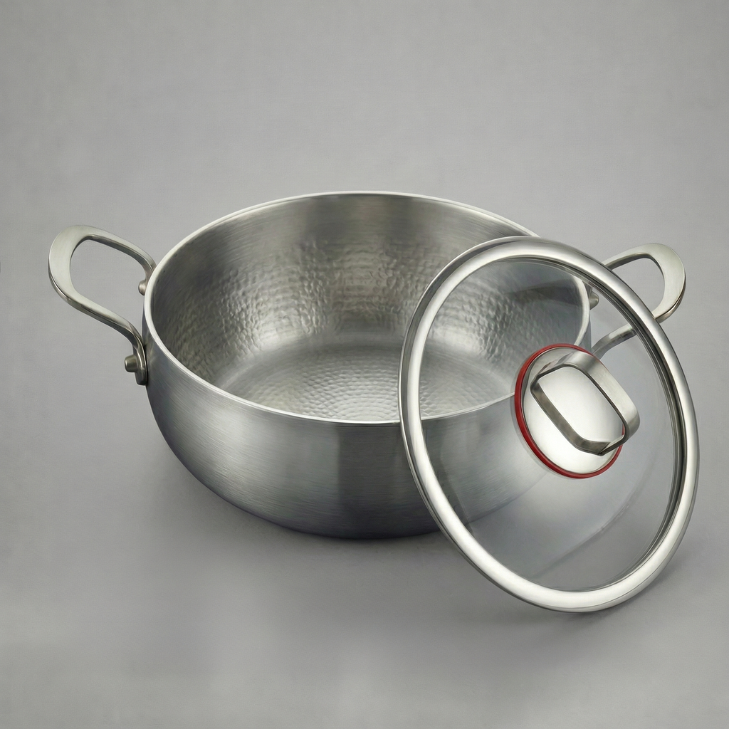 Tento hluboký titanový hrnec je vyroben tradičními metodami metalurgie a vyznačuje se jemně ručně kovanou titanovou povrchovou úpravou, která zvyšuje jeho odolnost a zároveň zajišťuje jemné a rovnoměrné řízení teploty. Je navržen pro pomalé a přesné vaření, ideální pro náročné přípravy.
