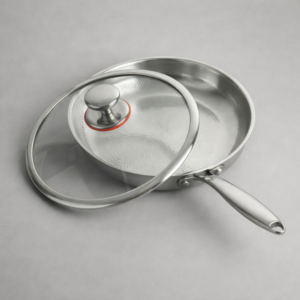 Tato titanová pánev je vyrobena podle tradičních kovodělných technik a vyniká svou ručně kovanou povrchovou úpravou, která každému kusu dodává jedinečný charakter. Tento řemeslný finiš nejen zvyšuje odolnost, ale také zajišťuje lepší kontrolu a rovnoměrné rozložení tepla pro přesné vaření.