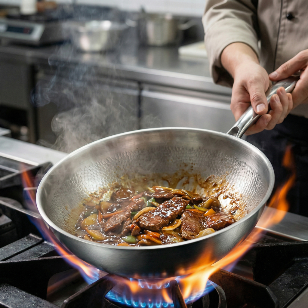 Přirozeně odolný vůči korozi a schopný zvládnout extrémní teploty, tento wok si zachovává svou pevnost a eleganci i po mnoha letech používání. Ergonomická rukojeť zajišťuje pohodlný a stabilní úchop, což přispívá k vynikajícímu výkonu a dlouhé životnosti tohoto kuchyňského nástroje.