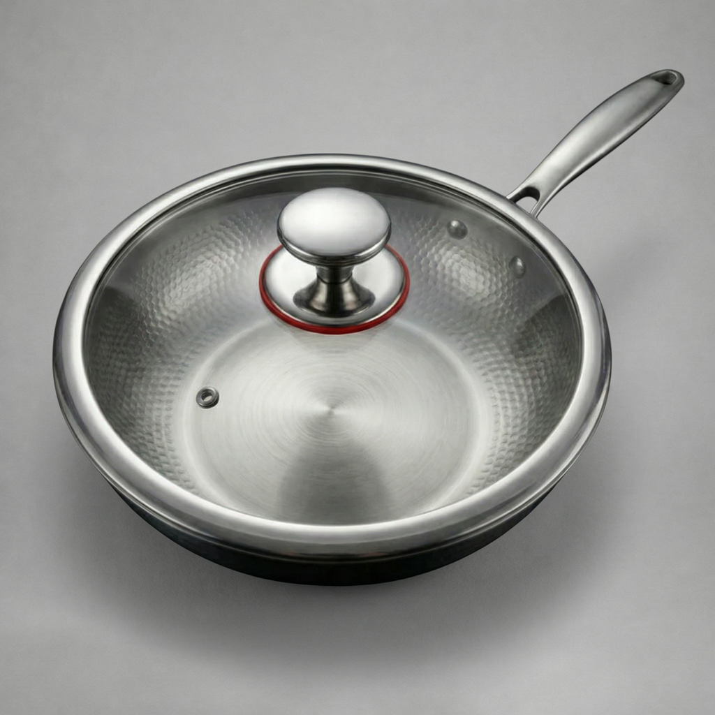 Tento titanový wok s plochým dnem je vyroben tradičními technikami, které zajišťují výjimečnou odolnost a dlouhou životnost. Jemně martelovaný povrch titanového materiálu nejen zvyšuje trvanlivost, ale také zaručuje rovnoměrné a precizní rozložení tepla, což je ideální pro kontrolovanou a vysoce efektivní přípravu pokrmů.